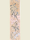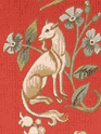 Ce paravent est composé de quatre bandes de 125 x 18 cm, qui peuvent être commandées séparément. Chacun des motifs (lapin songeur, perruche, chevrette, chien assis avec collier) peut aussi être utilisé pour orner un cordon de sonnette de dimensions 70 x 18 cm.